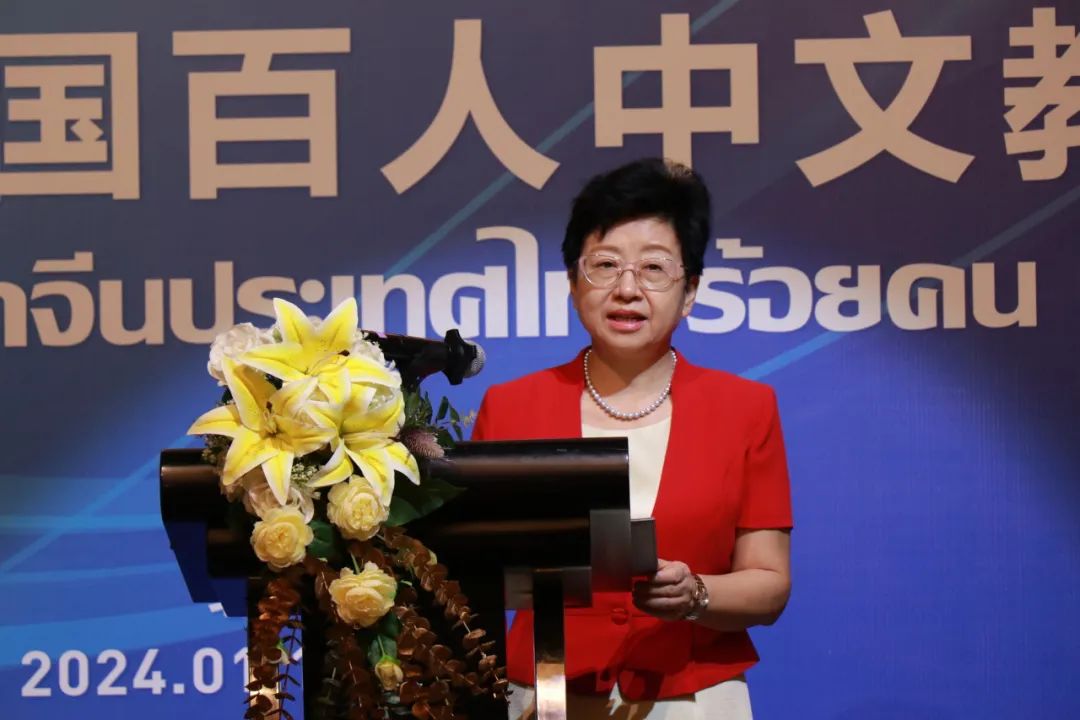 鐘英華在致辭中指出,語言是了解一個國家最好的鑰匙。國際中文教育是實現中外人文交流、民心相通、文明互鑒的具體途徑載體。近年來,教育部中外語言交流合作中心在構建開放包容的國際中文教育格局中,推動標準體系建設、師資隊伍建設、課程教材建設、協同聯動機制建設等,實現了體系化新發展、新突破、新成效,為國際中文教育高質量發展奠定堅實的基礎。他指出,在中泰兩國教育行政部門、社會各界和廣大民眾支持關心幫助下,在學界業界積極努力下,泰國中文教育實現了跨越式發展,取得了顯著成效,不僅體現在規模層面,更體現在促進中泰兩國經濟、社會、教育、企業、信息、醫療、技術等各個方面。泰國中文教育已成為促進民心相通、中泰一家親的生動實踐案例。青少年學習中文業已成為與職業發展、人生規劃、命運前途密切相關的剛需。加強中文教育標準化、規范化、體系化建設,對滿足當地中文學習的新需求態勢至關重要。希望這次培訓匯集各方智慧,為泰國中文教育高質量發展,為中泰一家親能再增添一份力量。