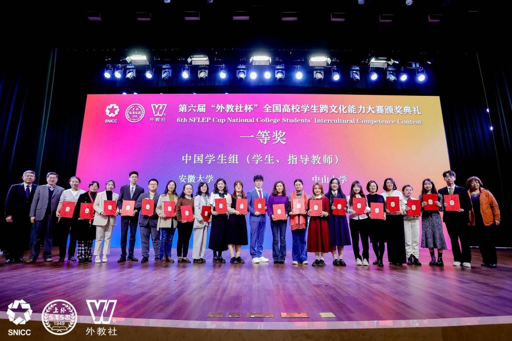 外國語學院消息(通訊員 陳乾坤)11月30日至12月3日,第六屆“外教社杯”全國高校學生跨文化能力大賽全國總決賽在湖南長沙舉行。我校2020級行政管理專業甘晨希、2021級地理科學(師范)專業孫藝貝、2022級漢語言文學(師范)專業陳詩晴三位同學組成的參賽隊伍獲得了全國總決賽一等獎;外國語學院大學外語部教師米迪、李英杰、石秀虹獲得指導教師一等獎。