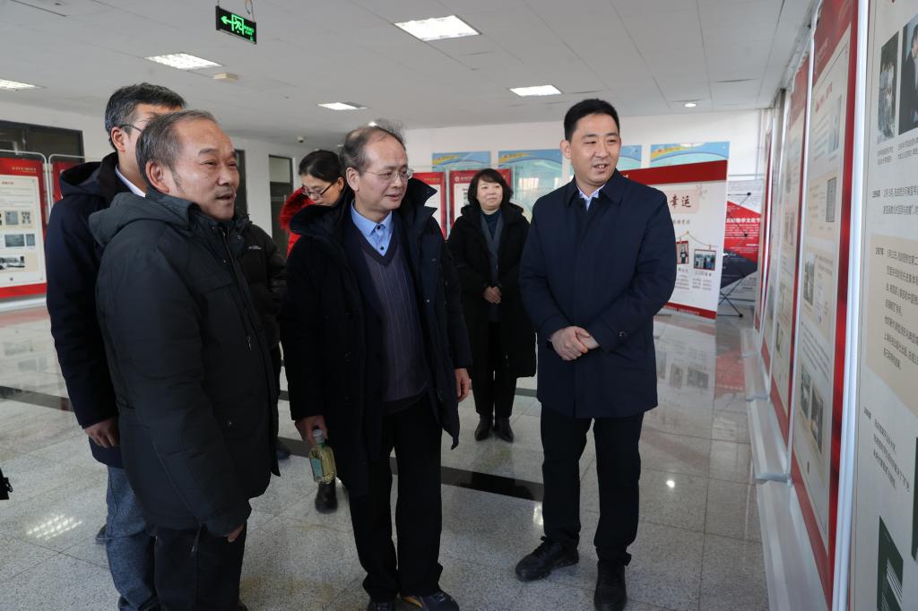 來訪期間,周向宇蒞臨數學科學學院指導工作。走進學院一樓大廳,他被正在展出的“陸啟鏗院士紀念展”吸引,在展板前駐足觀看。陸啟鏗是著名數學家華羅庚的親傳弟子之一,與華羅庚共同創建和發展了我國的多復變函數論。陸先生不僅做出了讓國際同行稱贊的學術成果,而且培養了多名有影響力的數學家,周向宇就是其中的杰出代表。