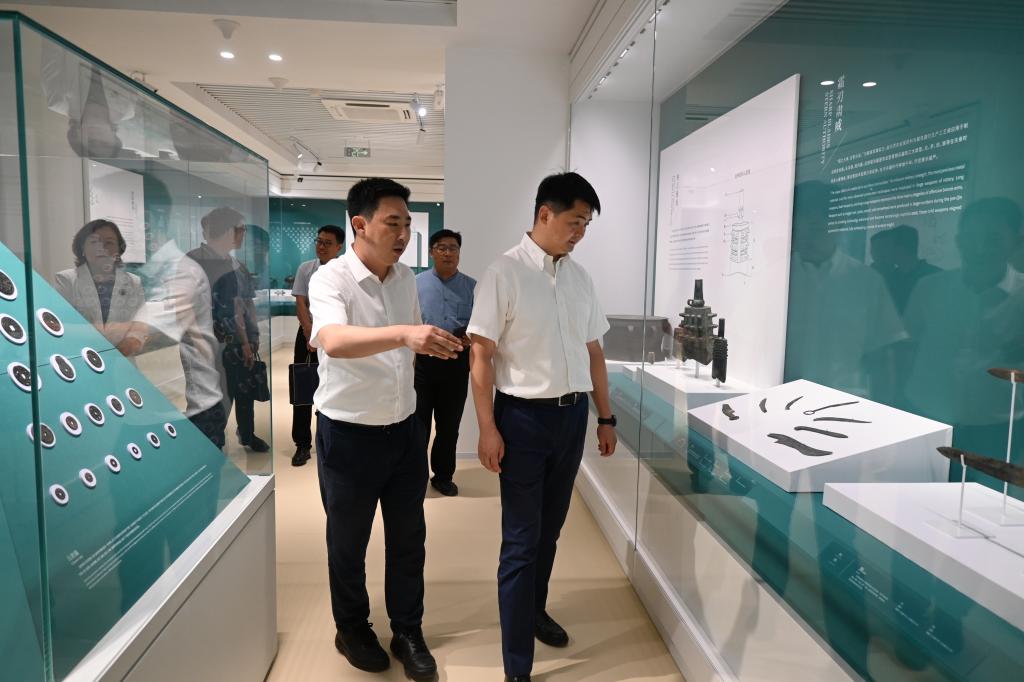 在博物館,鞏金龍詳細了解館藏文物陳列展覽的基本情況、文創(chuàng)產(chǎn)品和文物數(shù)字化開發(fā)利用后強調(diào),要緊扣時代脈搏,深挖文物藏品背后的中華優(yōu)秀傳統(tǒng)文化內(nèi)涵和精神價值,打造學(xué)校開展愛黨愛國愛社會主義和愛校榮校教育的重要陣地,增強師生文化自信和文化認(rèn)同感。