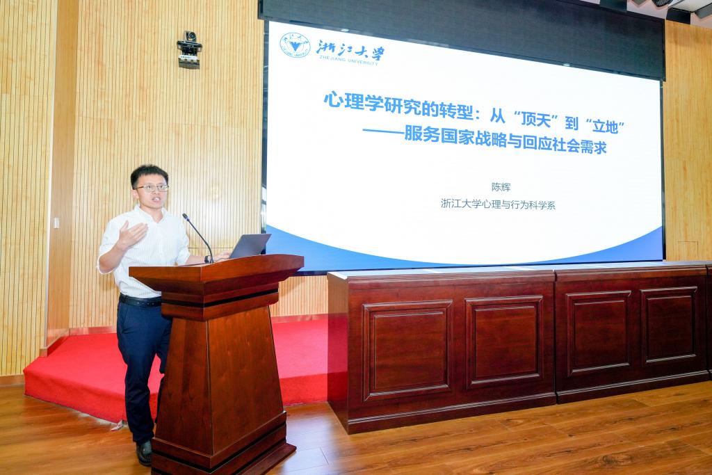 浙江大學求是特聘教授、心理與行為科學系系主任陳輝作題為“心理學研究的轉型:從‘頂天’到‘立地’——服務國家戰略與回應社會需求”的報告。他結合多年科研實踐,從學科定位、突圍思路到案例落地,系統闡述了如何構建兼具本土特色與國際影響力的心理學體系。他談到,立足現實,勇攀前沿,努力提升我國在國際心理學界的話語權,是中國自主知識體系建設的重要路徑。