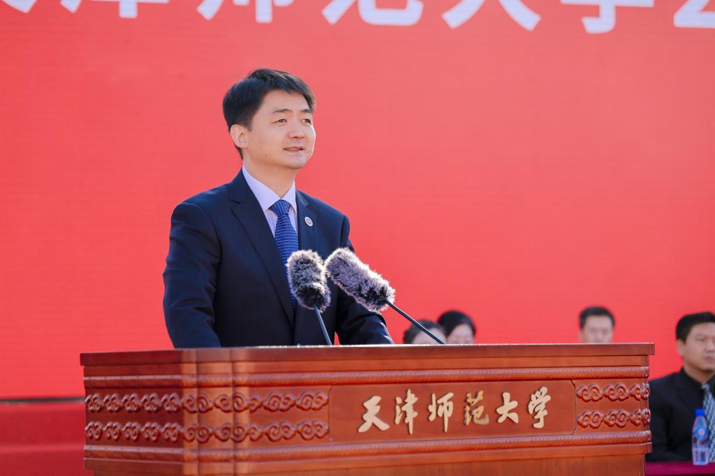 校黨委書記曲凱,校黨委副書記、校長鞏金龍,校領導董洪霞、陳玳瑋、徐興云、白學軍、佟德志、秦龍、紀德奎出席典禮。我校數學系數學專業1989屆校友、天津市南開中學黨委書記李軼受邀作為校友代表一同出席。開學典禮由校黨委副書記董洪霞主持。
