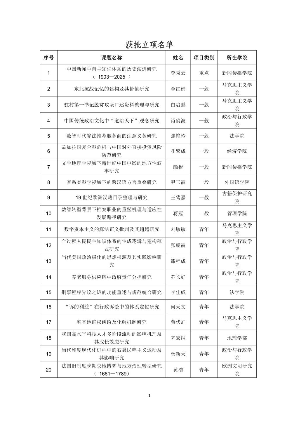 在26項國家社科基金年度項目中,政治與行政學院獲批5項,馬克思主義學院獲批4項,管理學院和法學院分別獲批3項,新聞傳播學院、外國語學院、古籍保護研究院分別獲批2項,心理學部、文學院、歐洲文明研究院、經濟學院、地理學部分別獲批1項。