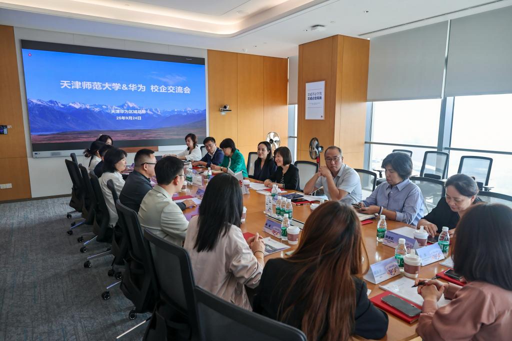 張亞對董洪霞一行表示熱烈歡迎,他介紹了華為天津區域總部建設歷程、發展規劃及數智教育解決方案,重點講解了校企合作班落地方案與校園活動計劃。他高度認可天津師范大學的辦學實力與文化底蘊,強調企業對高素質人才的迫切需求,期待未來與學校在人才培養、學生就業、技術交流等領域開展更深度合作,實現校企互利共贏。座談會后,董洪霞一行參觀了華為旗艦店以及華為天津區域總部園區,實地了解華為最新科技產品及相關崗位工作要求,為后續人才培養精準對接產業需求奠定基礎。