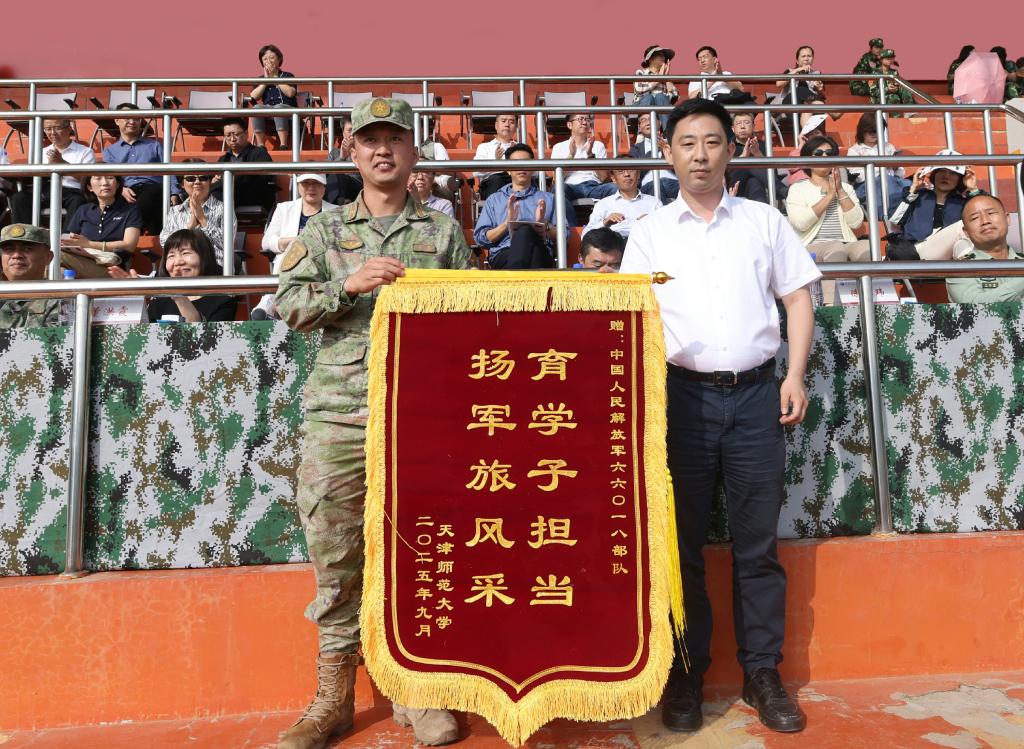 匯報結束后,陳玳瑋向承訓部隊贈送錦旗,對部隊官兵的辛勤付出表示感謝。參會領導和來賓為“愛我中華 情系國防”學生軍訓歌詠比賽、內務整理標兵宿舍比賽獲獎單位頒獎。