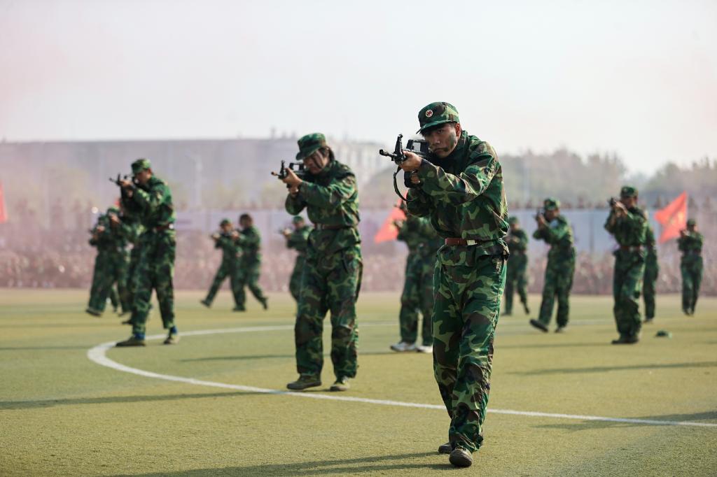 分列式結束后,同學們帶來了精彩的軍事科目匯報表演。格斗術拳腳凌厲、招式剛勁、動作迅猛;戰術科目隊形變換整齊規范、攻守兼備、協同默契。一招一式充分體現了我校學生勇于戰勝困難、戰勝自我的意志品質和蓬勃向上的青春朝氣。
