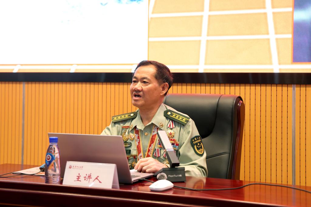 老山地區(qū)對(duì)越反擊作戰(zhàn)一等戰(zhàn)功、慶祝中華人民共和國(guó)成立70周年國(guó)家榮譽(yù)獎(jiǎng)?wù)隆④婈?duì)院校育才金獎(jiǎng)、武警部隊(duì)高層次人才獎(jiǎng)獲得者、武警指揮學(xué)院原戰(zhàn)役戰(zhàn)術(shù)系副主任謝紹云回顧了征戰(zhàn)沙場(chǎng)的崢嶸歲月。他曾寫下血書主動(dòng)請(qǐng)纓赴前線,在“貓耳洞”工事中忍受潮濕悶熱、蟲咬、缺水等惡劣條件,執(zhí)行任務(wù)56次、排除爆炸物1250余枚,“90%的戰(zhàn)士身體潰爛卻沒人叫苦,因?yàn)椤鎳?guó)利益高于一切’”。通過“團(tuán)政委問‘誰先死’”的真實(shí)往事,他告訴同學(xué)們,“軍人的犧牲精神早已融入血脈”,深刻闡述了和平的來之不易與寶貴價(jià)值,并叮囑青年人要銘記英烈、珍惜當(dāng)下、捍衛(wèi)和平。