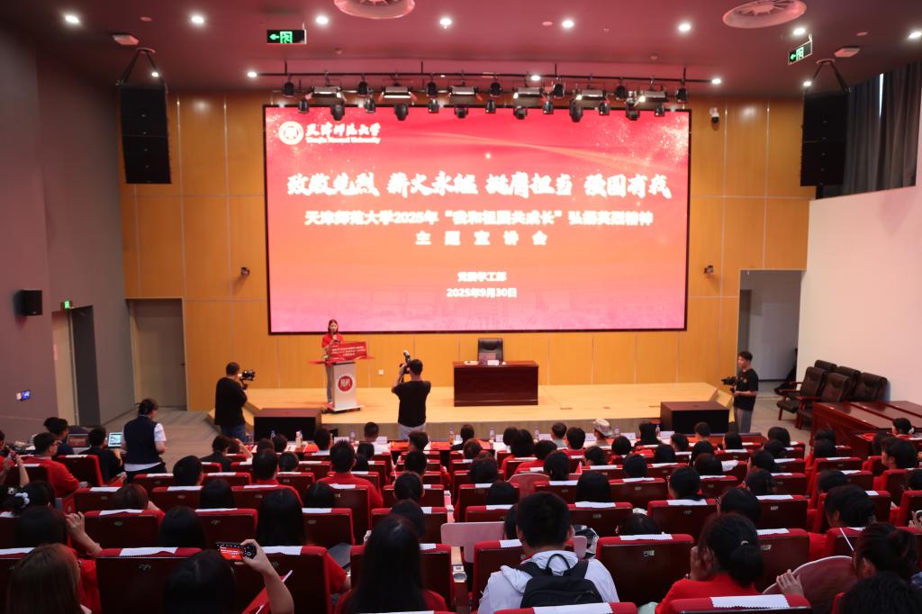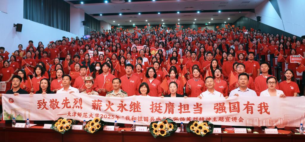 本站訊(通訊員 楊晨)緬懷革命先烈,青春告白祖國(guó)。9月30日下午,在第十二個(gè)烈士紀(jì)念日來臨之際,天津師范大學(xué)在京津冀教師發(fā)展協(xié)同創(chuàng)新中心B座大報(bào)告廳鄭重舉辦“我和祖國(guó)共成長(zhǎng)”弘揚(yáng)英烈精神主題宣講會(huì),校黨委副書記董洪霞出席并致辭,天津市退役軍人事務(wù)局、薊州區(qū)退役軍人事務(wù)局、天津師范大學(xué)黨委學(xué)生工作部相關(guān)負(fù)責(zé)同志,我校學(xué)生黨員骨干“旗幟班”學(xué)員代表、各學(xué)部(院)2025級(jí)新生代表500余人參加。