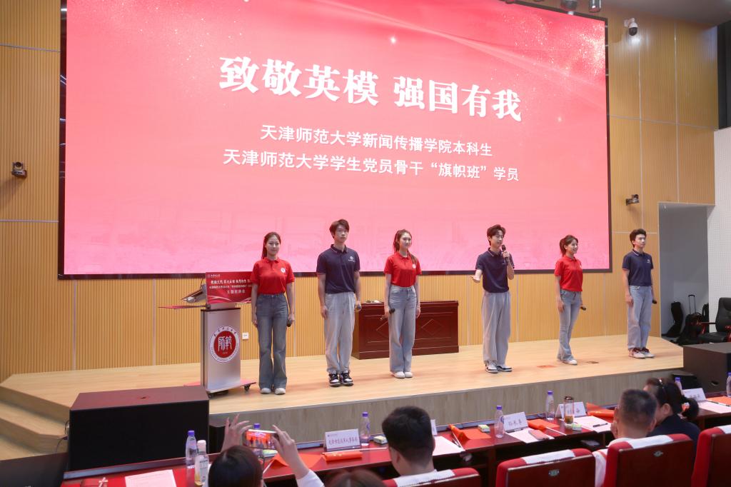 “致敬先烈 薪火永繼 挺膺擔(dān)當(dāng) 強(qiáng)國(guó)有我!”新聞傳播學(xué)院本科生代表以鏗鏘有力的青春宣言向英模致敬,向祖國(guó)深情告白。學(xué)生黨員骨干“旗幟班”學(xué)員滿懷崇敬向英模代表獻(xiàn)花。