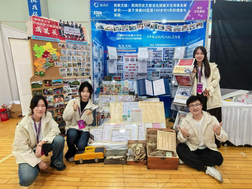 由經(jīng)濟(jì)學(xué)院教師張致和、徐昊天指導(dǎo),范思佳、袁語晗、金顯婷、贠佳瑞(南開大學(xué))、劉晨雪、喬家祺(河北大學(xué))、楊玉潔為團(tuán)隊成員的《搶救文脈:民間歷史文獻(xiàn)活化賦能文化傳承發(fā)展研究——基于津冀60區(qū)縣140鄉(xiāng)村5年的調(diào)查與實踐》項目榮獲主體賽一等獎。該項目依托經(jīng)濟(jì)學(xué)院民間歷史文獻(xiàn)調(diào)查團(tuán)廣泛開展田野調(diào)查,搶救整理民間文獻(xiàn)54000件套,構(gòu)建起以文獻(xiàn)知識譜系為核心,保護(hù)載體并活化利用、培育傳人并技術(shù)反哺相結(jié)合的三元互動文脈傳賦模式,切實賦能地方文化傳承發(fā)展。