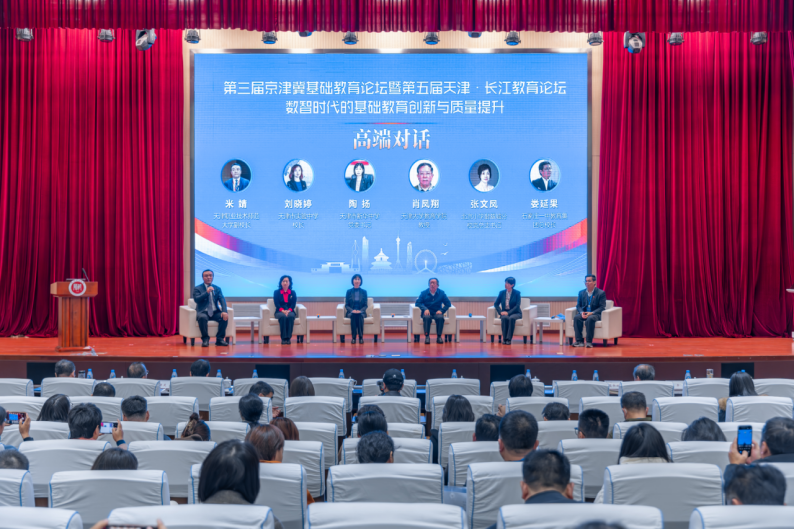 在高端對(duì)話環(huán)節(jié),天津大學(xué)教育學(xué)院教授肖鳳翔、天津市實(shí)驗(yàn)中學(xué)校長(zhǎng)劉曉婷、天津市新華中學(xué)黨委書記陶揚(yáng)、北京小學(xué)翡翠城分校黨總支書記張文鳳、河北省石家莊一中教育集團(tuán)總校長(zhǎng)婁延果,圍繞“數(shù)智時(shí)代的基礎(chǔ)教育創(chuàng)新發(fā)展”這一主題,聚焦數(shù)智時(shí)代教師育人素養(yǎng)、AI賦能課堂教學(xué)的辯證關(guān)系、不同學(xué)段數(shù)智教育的特色化實(shí)踐、數(shù)智技術(shù)賦能區(qū)域基礎(chǔ)教育協(xié)同發(fā)展等議題展開深度對(duì)話。該環(huán)節(jié)由天津職業(yè)技術(shù)師范大學(xué)副校長(zhǎng)米靖主持。