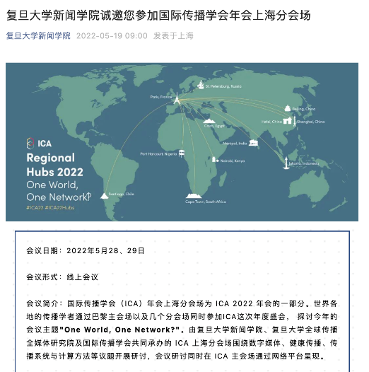 2022年5月28日,管理學院數據科學系翟羽佳副教授受復旦大學新聞學院邀請,在國際傳播學會(International Communication Association,簡稱ICA)年會上海分會場作了題為“ The thousand faces of images in AI news(人工智能新聞圖像的千姿百態)”的學術報告。