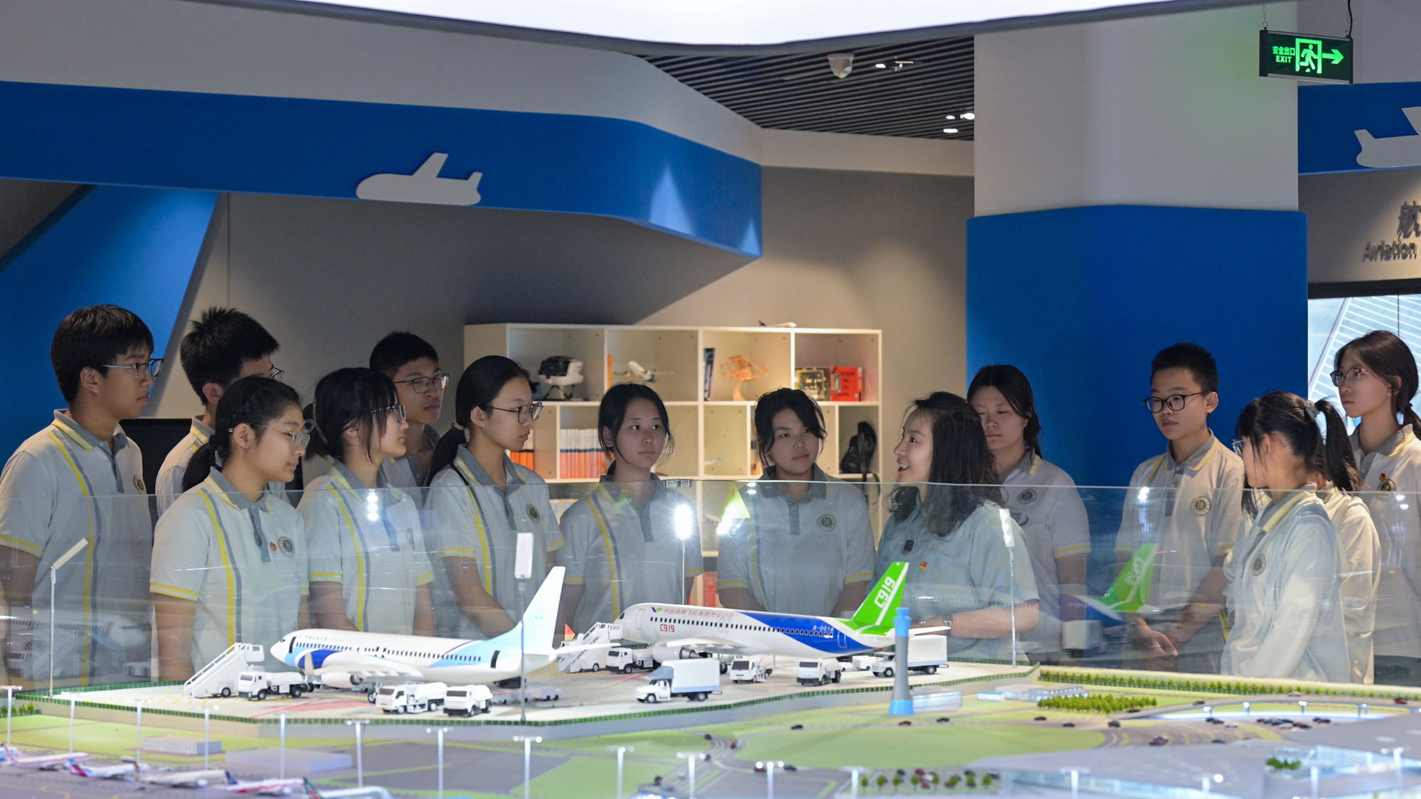 轉至中國民航大學航空體驗館,“中國心”成為焦點。“大飛機國產化最難的是什么?”在C919模型前,王會朋老師提問道。“發動機!”“像芯片一樣被‘卡脖子’!”同學們紛紛搶答。