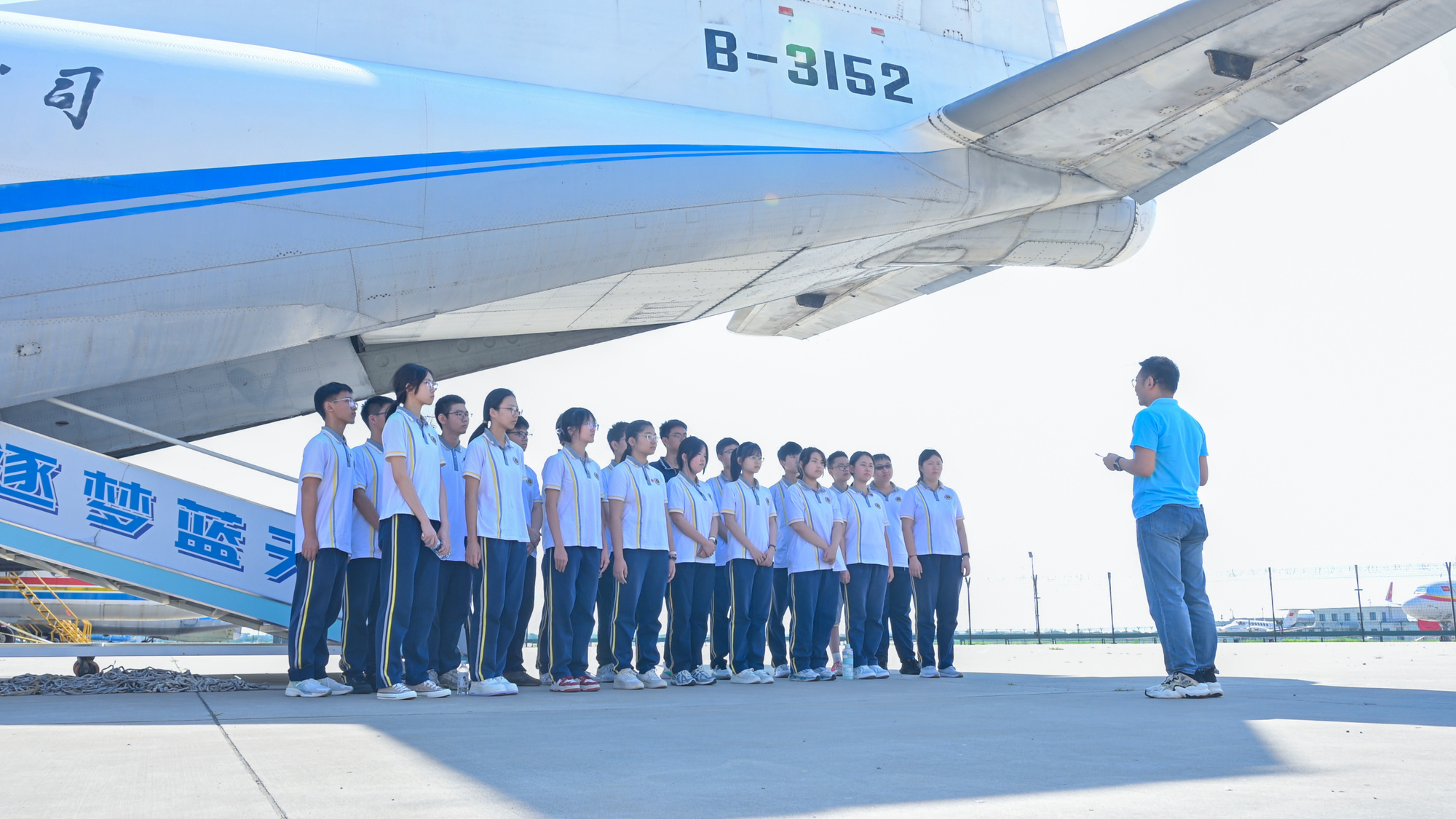 活動在中國民航大學停機坪拉開序幕。停機坪上陳列的飛機成為同學們了解中國航空工業發展歷程的生動教材。“從國產第一架噴氣式戰斗機殲-5,到自主研發的中程中型多用途運輸機運-8的原型A12,每一架飛機都承載著厚重的歷史記憶,勾勒出中國航空工業從無到有、由弱到強的壯麗軌跡。”在天津市第五十七中學教師王會朋的引導下,同學們不僅了解了這些飛機的技術特點和歷史背景,更深刻體會到了先輩們為了國家航空事業崛起所付出的艱辛努力。