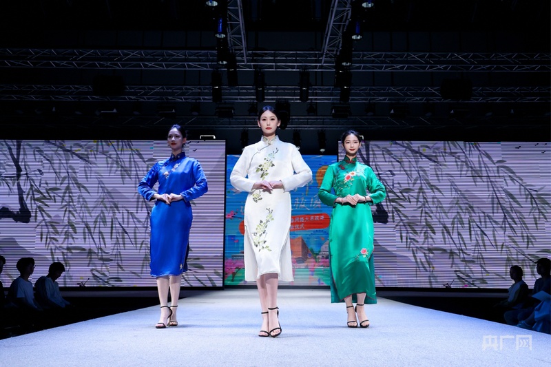 天津工業大學藝術學院表演系學生帶來旗袍服飾秀《抽紗刺繡·華韻芬芳》