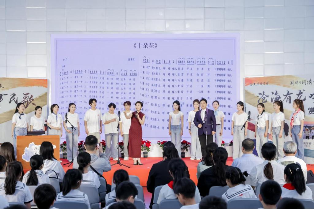 在民歌賞讀環(huán)節(jié),男高音獨(dú)唱演員趙天刃、天津師范大學(xué)音樂與影視學(xué)院聲樂系教師劉慧慧接連演繹了《畫扇面》《蓮花落》《十朵花》等天津民歌,讓聽眾感受到天津民歌在傳承與創(chuàng)新中展現(xiàn)出的韌性與活力。
