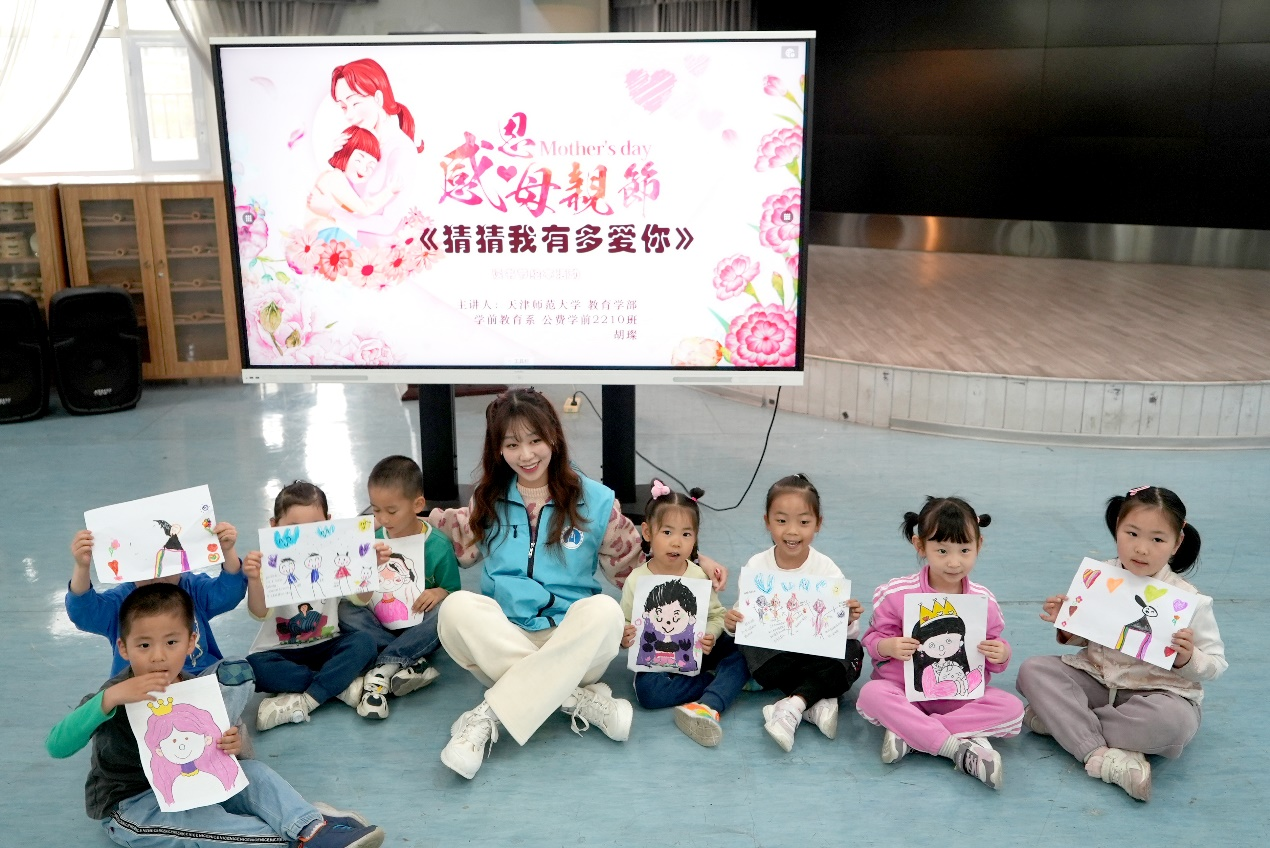 在河西區(qū)第十六幼兒園、和平區(qū)第九幼兒園的教室里,《猜猜我有多愛你》的溫情故事在師范生“故事魔法師”講述中流淌。幼兒們通過角色扮演模仿小兔子表達愛意,用彩紙創(chuàng)作“彩虹花”“我的媽媽”手工作品,將親情教育融入童趣課堂。“這樣的閱讀實踐讓教育有了溫度。”幼兒園教師反饋道。