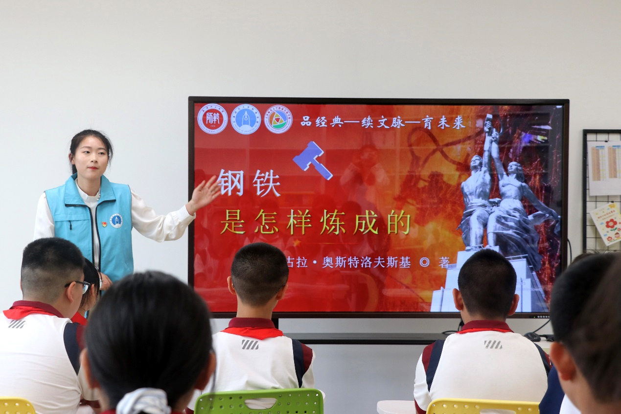 師大附校初中部的課堂上,《鋼鐵是怎樣煉成的》主題閱讀掀起熱潮。當“人的一生應當這樣度過……”的朗誦響徹教室,學生們以角色扮演再現(xiàn)保爾·柯察金的成長歷程。通過小組研討讓紅色精神在青春血脈中奔涌。“這顆紅星串聯(lián)起我們的責任與擔當。”參與學生如是說道。
