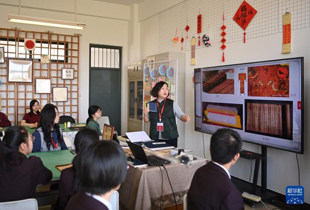當日,天津師范大學歷史文化學院聯合天津市法耀高級中學開展研學讀書會活動,兩校師生代表通過線裝書制作、文物展室參觀、分享讀書心得等形式,迎接即將到來的世界讀書日。