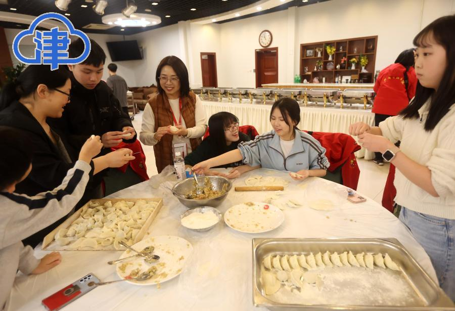 19日,2024/2025年“中國尋根之旅”冬令營天津師范大學營進入互動體驗環節,部分來自韓國的華裔、華僑青少年營員們特意不吃早飯,只為品嘗一下自己攤的煎餅果子和親手包的餃子。未來幾天里,營員們還將學習、參觀、考察天津的方言、非遺、生態、科技以及獨特的城市風貌和人文景觀。