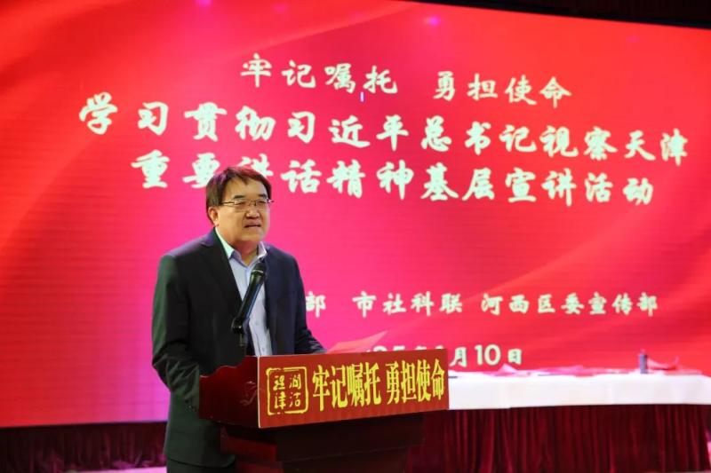 市委宣傳部副部長徐中同志強調,今年是“十四五”規劃的收官之年,是進一步全面深化改革、奮力譜寫中國式現代化天津篇章的重要一年,為全面反映我市貫徹落實習近平總書記視察天津重要講話精神的進展成效,全方位、立體化展現習近平總書記殷殷囑托在津沽大地的生動實踐成果,我們要持續做好“牢記囑托 勇擔使命”學習貫徹習近平總書記視察天津重要講話精神基層宣講活動,不斷創新方式方法,在增強宣講吸引力和感染力、擴大宣講覆蓋面和影響力上持續用力,進一步擦亮“理潤津沽”宣講品牌,共同譜寫天津理論宣講的嶄新篇章。
