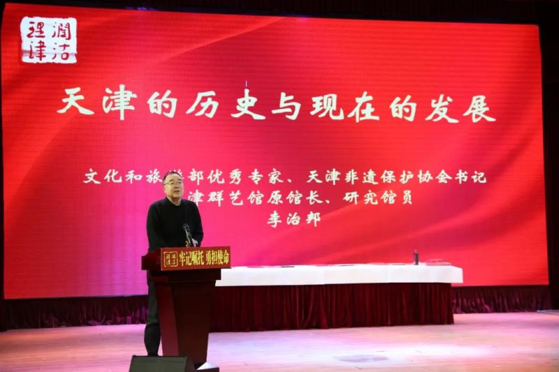 年畫娃娃翩翩起舞,宣講活動在小朋友們雀躍的舞步中開啟。“天津是一座值得驕傲的城市,我們有古文化街和鼓樓這樣具有天津傳統特色的地方,也有意式風情區和五大道這樣歐式風格鮮明的街道,中西融合彰顯這座城市的現代化大都市胸懷和境界。”天津非遺保護協會書記、天津群藝館原館長李治邦現場講述了“天津的歷史與現在的發展”。