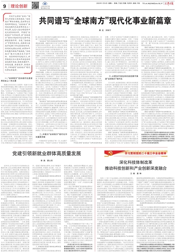 推進“全球南方”實現開放共贏的現代化。“合則強,孤則弱。”加強全球發展合作,是符合“全球南方”長遠和根本利益的陽光大道。當前,世界經濟趨于穩定,但發展不平衡問題依然突出。發達國家在實現自身經濟發展的同時,應重視“全球南方”關切,向“全球南方”提供必要的資金、技術、能力建設支持。同時,“全球南方”也要加強南北對話,深化南南合作,抓住“大金磚合作”機遇,實現“大金磚合作”與高質量共建“一帶一路”有效對接,共同打造落實全球發展倡議的樣板。