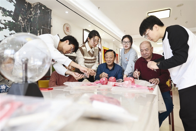 師大師生黨員們走進養老院,根據老人認知特點精心挑選物理實驗項目,耐心講解實驗原理,手把手協助老人操作實驗器材,引領老人觀察實驗現象并深入思考其中邏輯。通過趣味互動充分鍛煉老人思維與動手能力,助力預防認知障礙疾病,全力為老人打造充滿活力與智慧的晚年生活,探索高校與社會機構合力助老新模式。