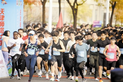 天津師范大學校園迷你馬拉松暨教職工健身走活動昨天在校園內舉行。在冬日暖陽下,數千名師生熱力開跑。