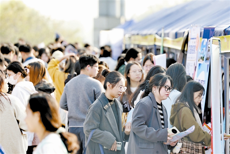 10月24日,天津師范大學(xué)2025屆畢業(yè)生秋季雙選會在校園內(nèi)舉行。本次雙選會吸引了200家用人單位參會,涵蓋建工、金融、教育、生物、通信、商貿(mào)、傳媒、科技、醫(yī)療、物流等行業(yè),幾乎覆蓋學(xué)校全部專業(yè),用人需求達8700余個。活動現(xiàn)場,同步舉辦生涯體驗營活動,將職業(yè)生涯規(guī)劃元素設(shè)計成系統(tǒng)的活動,吸引眾多學(xué)生參與。