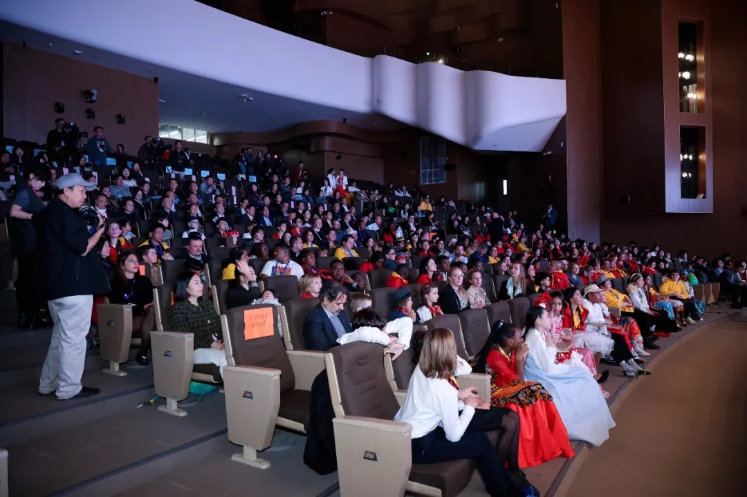 歡迎儀式在華夏未來少兒藝術(shù)團(tuán)帶來的歌舞表演《快樂中文》拉開帷幕。小演員們身著五彩繽紛的服飾,演繹世界各國文化交融的場景,向來自59個國家的68名參賽選手以及95名家長表示誠摯歡迎。來自天津師范大學(xué)的留學(xué)生用多國語言演繹歌曲《少年》,用歌聲表達(dá)共同的夢想。
