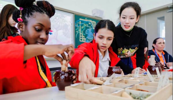10月19日,第十七屆“漢語橋”世界中學生中文比賽的選手們在緊張的比賽之余,參加了豐富有趣的校園體驗活動,包括非遺香囊、漆扇工藝、花鈿藝術、剪紙藝術、走馬燈等文化體驗項目。