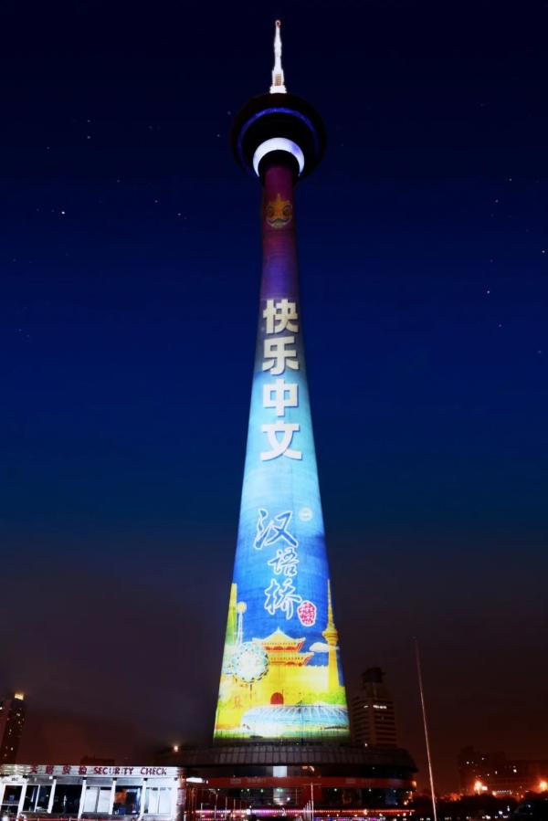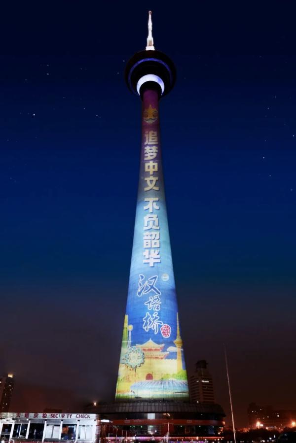 天塔,總高度415.2米——建成于1991年10月1日,成為當(dāng)時亞洲第一的高塔,也是天津人民的驕傲。今日,一場主題為“追夢中文,不負(fù)韶華”的燈光秀在天津地標(biāo)建筑天塔上演。天津天塔5000平米的塔身上,璀璨的燈光照亮了夜色,當(dāng)“橋見中國,樂享津彩”、“快樂中文”、“追夢中文,不負(fù)韶華”輪番呈現(xiàn)在塔身上,路過的行人、匆匆的車輛都紛紛駐足,抬頭仰望240米高的天塔塔身,共同為“漢語橋”系列中文比賽祝福與助威。(津云新聞編輯付勇鈞)