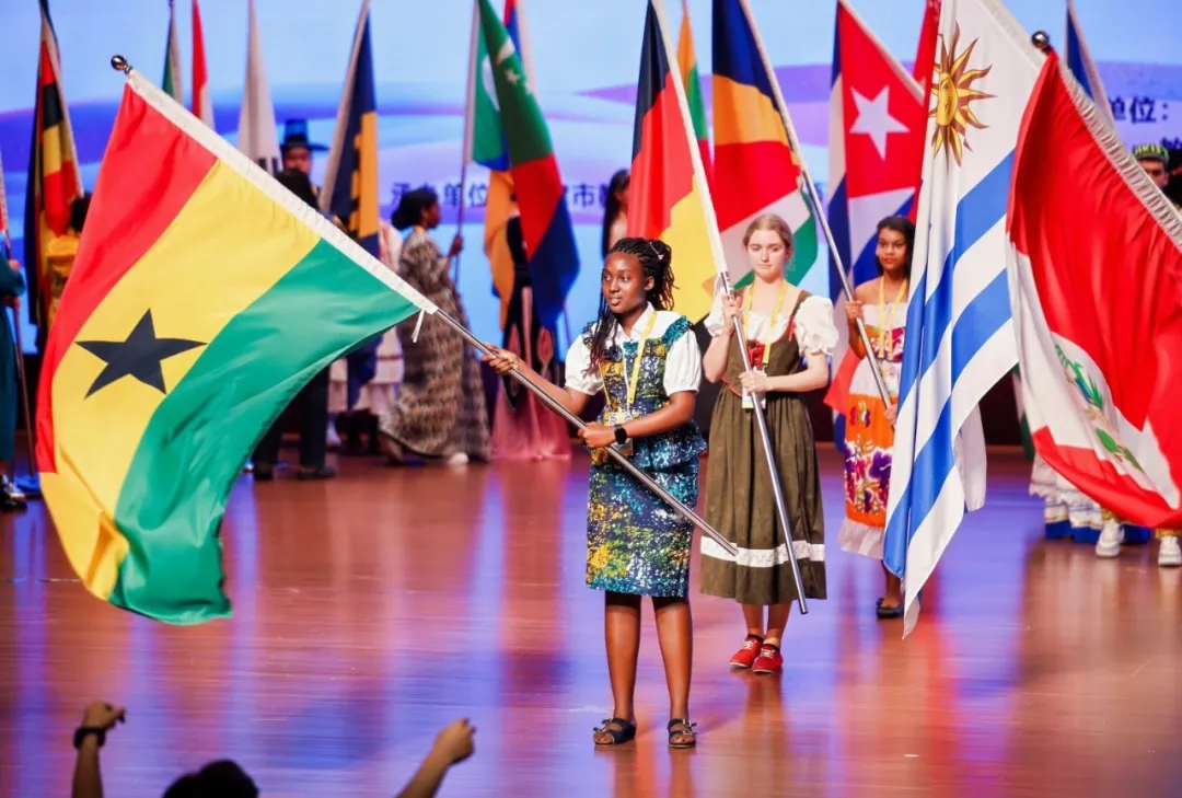 伴隨著“漢語橋”主題曲響起,來自96個國家的113名選手揮舞著本國國旗依次入場。