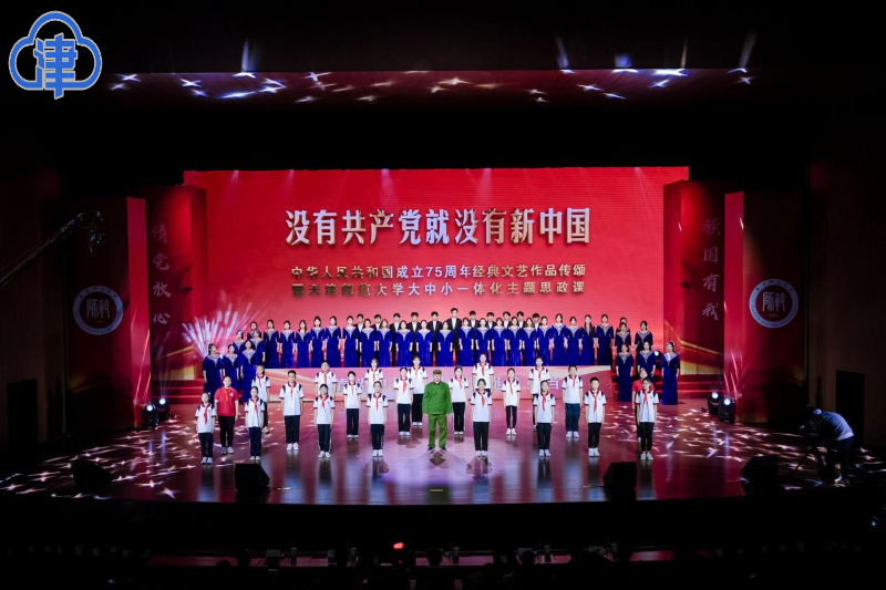 為號(hào)召青年學(xué)子“心懷國(guó)之大者”,用實(shí)際行動(dòng)踐行“請(qǐng)黨放心、強(qiáng)國(guó)有我”的錚錚誓言,天津師范大學(xué)近日舉辦“沒(méi)有共產(chǎn)黨就沒(méi)有新中國(guó)”中華人民共和國(guó)成立75周年經(jīng)典文藝作品傳頌暨天津師范大學(xué)大中小一體化主題思政課。現(xiàn)場(chǎng)700余名師生共同觀看,線上4.9萬(wàn)余人同步觀看圖片直播。