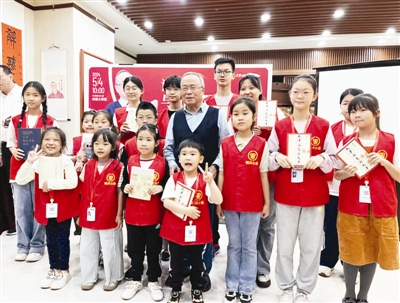 譚汝為教授與小讀者合影。