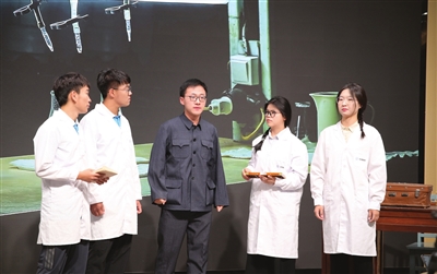 整部舞臺劇共有七幕,以鄧稼先夫人許鹿希的視角展開,采用倒敘方法講述她作為鄧稼先一生的旁觀者和親歷者所了解的鄧稼先。舞臺劇通過科學家形象的多維塑造,對科學家精神作出生動詮釋,讓學生們感受到以鄧稼先為代表的老一輩科學家心懷“國之大者”的勇毅擔當,體悟科學成就背后的艱辛與努力,樹立民族復興的報國志向。