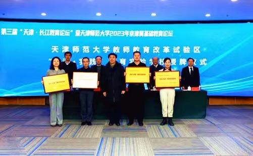 論壇期間還舉行了天津師范大學教師教育改革實驗區“生活·實踐”教育實驗學校授牌和共建合作簽約。天津師范大學濱海附屬學校、天津師范大學濱海附屬小學、圍場滿族蒙古族自治縣腰站中學和圍場滿族蒙古族自治縣第三小學榮獲授牌。天津師范大學、河北省承德市教育局、圍場滿族蒙古族自治縣教育和體育局簽訂共建合作協議。三方將以教師教育改革實驗區建設為紐帶,充分發揮各自優勢,圍繞新時代基礎教育高質量發展的目標和要求,集聚創新資源、做強教育共同體、推進深度融合發展,攜手繪就津冀基礎教育協同發展的新篇章。(呂興龍 黃建高)