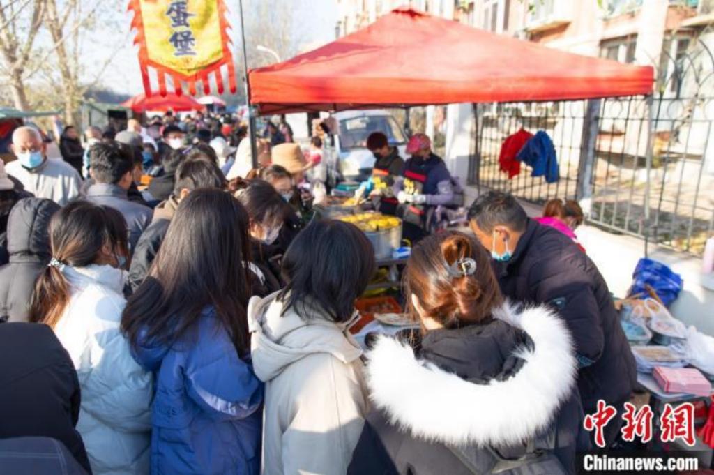 據張璇介紹,位于天津市西青區的“姚村大集”,只有農歷“逢一逢六”舉辦,今天適逢周日,她們宿舍就“集體出動”了。“在家鄉,父母經常帶我去趕大集,現在很少有這種機會。”張璇告訴記者,“姚村大集”各類新出爐的小吃熱氣騰騰,驅散了冬日的寒風。