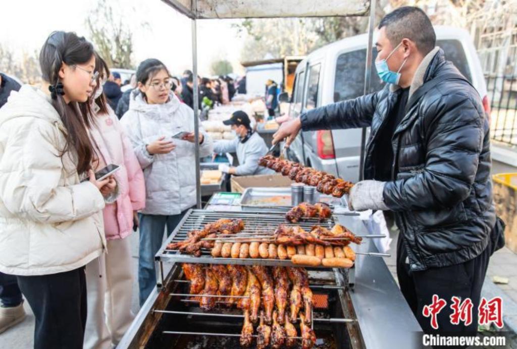 3日,天津師范大學的研一學生張璇和室友拎著大包小裹的水果、零食等,剛從“姚村大集”趕集歸來。她說,“大集”里的東西實惠又美味,還能體會到大城市難有的“人間煙火氣”。