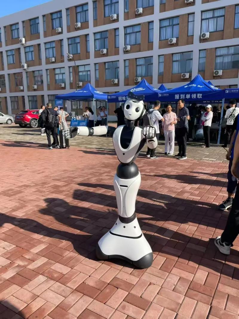 “機器人與機械狗是學院最新研究改進的成果。今年讓它們首次參與迎新工作,并設置了現場體驗環(huán)節(jié),是想讓學生直觀感受到科技魅力,在新生心中播下科技‘種子’。”天津科技大學人工智能學院黨委副書記韓靜介紹,在互動過程中,新生們能清晰看到機械狗如何通過傳感器識別障礙物、通過算法調整行進路線,切實感受到機械工程的結構設計與智能算法的邏輯運算協(xié)同工作;智能機器人則開放了基礎編程接口,新生可嘗試修改交互話術或動作指令,親身體驗技術參數調整帶來的功能變化,讓學生明白技術研發(fā)的核心是“解決真實需求”,也激勵學生主動思考如何將課堂知識轉化為服務社會的實用方案,培養(yǎng)從“學習知識”到“創(chuàng)造價值”的思維轉變。
