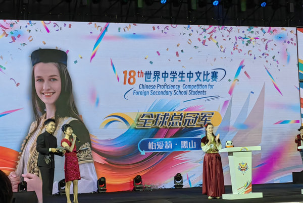 Alisa Bogdanovic, with the Chinese name Bai Aili, won the global championship at the 18th Chinese Proficiency Competition for Foreign Secondary School Students.