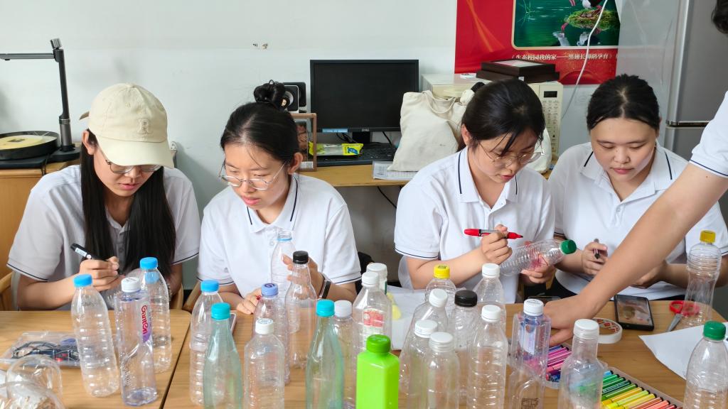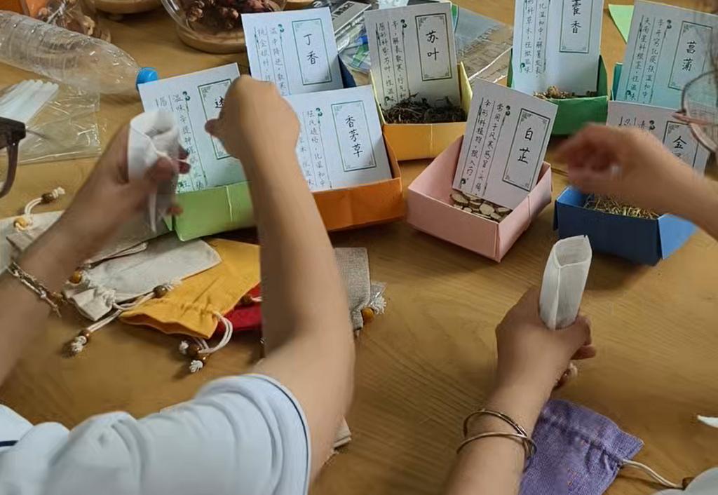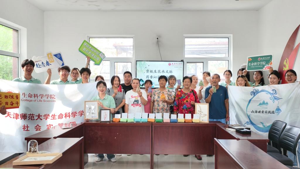 實踐團深挖地域特色文化資源。在天津薊州區八仙山,隊員們跟隨專業教師辨識中藥材,親手制作兼具藥用價值與藝術美感的中藥香囊,同時將生物多樣性知識融入傳統剪紙藝術,創作完成“中藥圖譜”系列剪紙作品。在煙臺,團隊聚焦海洋生態保護,回收海洋廢棄物并將其清洗、剪裁、彩繪后改造為膠東魚燈,不僅重現“燈影映海”的非遺魅力,更以青春實踐詮釋“綠水青山就是金山銀山”理念的時代內涵。