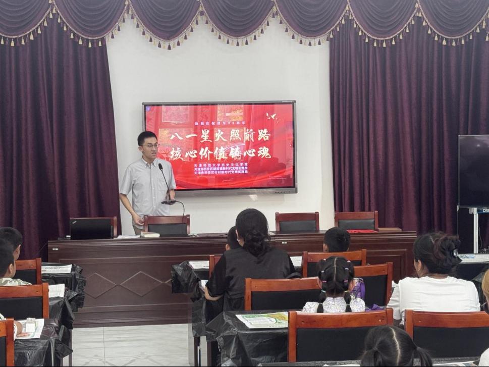 本站訊(通訊員 周二保)在八一建軍節(jié)來臨之際,為深入學(xué)習(xí)貫徹黨的二十大精神,培育和踐行社會主義核心價值觀,天津師范大學(xué)歷史文化學(xué)院于7月29日至31日,聯(lián)動社區(qū)與鄉(xiāng)村開展了“龍越云津 憶承紅韻”紅色研學(xué)項目及“八一星火照前路 核心價值鑄心魂”紅色宣講活動。通過校社鄉(xiāng)聯(lián)動、實踐-研討-體驗有效結(jié)合,將“行走的思政課”延伸至心靈深處,引導(dǎo)青少年賡續(xù)紅色血脈,守護(hù)好紅色江山。