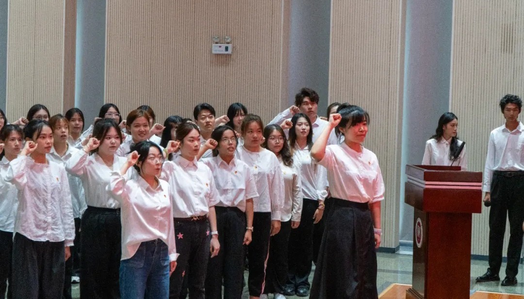魏尚、孟小麗分別領(lǐng)誓,全體新發(fā)展黨員、團(tuán)員握緊右拳,面向黨旗、團(tuán)旗,鄭重宣誓。當(dāng)“我志愿加入中國共產(chǎn)黨”的誓詞響起,在場的學(xué)子心潮澎湃。