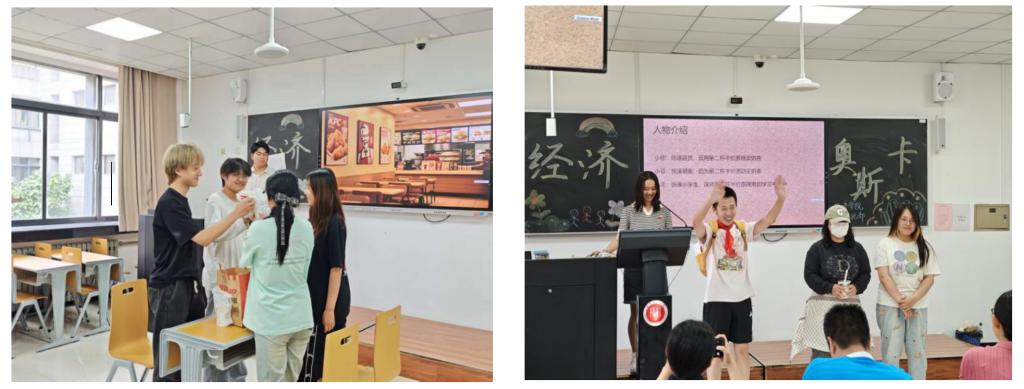 在評審環節,教師馬瑜與孫伯馳對參賽團隊的表現進行專業點評。兩位導師高度贊賞同學們創新性地運用情景劇形式,將復雜的經濟文化概念轉化為生動的可視化表達,認為這不僅充分展現了扎實的專業素養,更體現了將理論融于實踐、知行合一的能力。同時,他們提出建設性建議,為同學們接下來的學業發展指明方向。