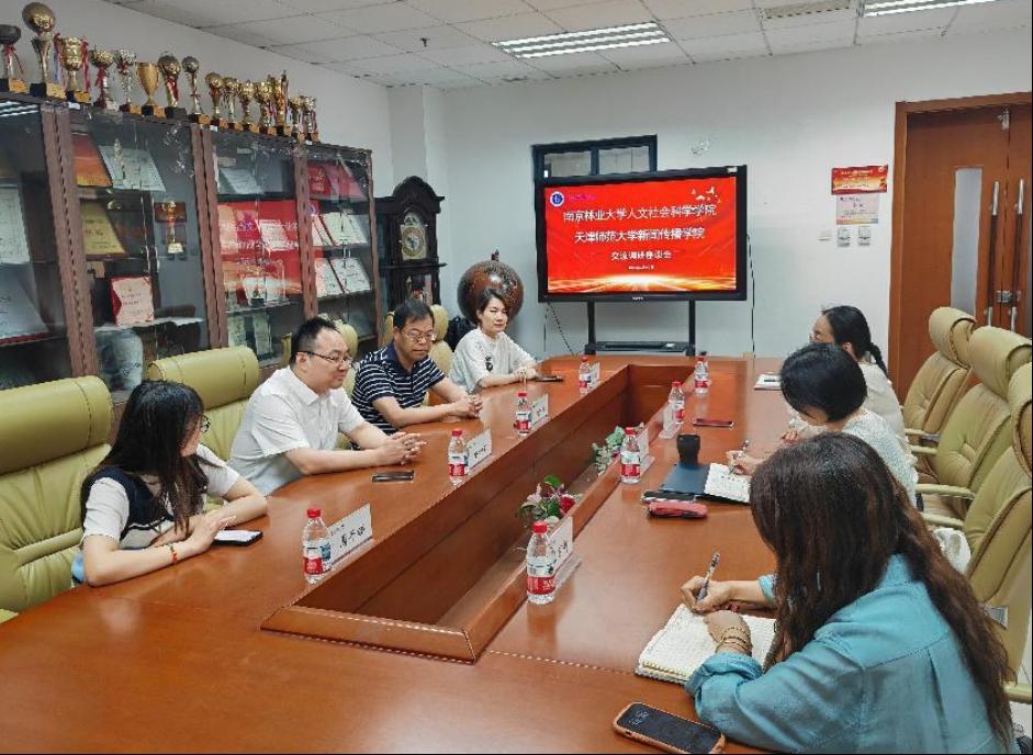 本站訊(通訊員 高宇)6月10日,南京林業大學人文科學學院院長陳相雨一行到訪天津師范大學新聞傳播學院,就學科建設、人才培養、師資隊伍建設和教育教學改革等內容開展交流,新聞傳播學院副院長林靖、新聞學系教授王芳等同志參加座談。