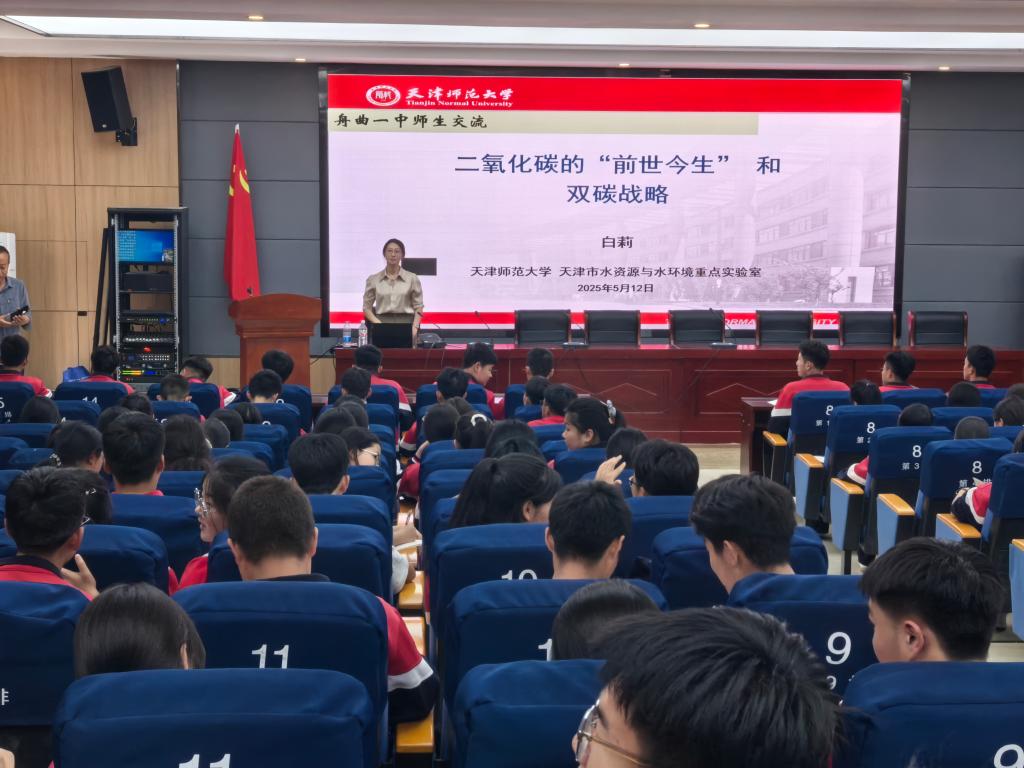 本站訊(通訊員 王艷杰)“我們這里發生過特大山洪泥石流災害,大家知道產生泥石流的原因嗎?”……今年5月12日是我國第十七個全國防災減災日,當天,跨越一千多公里來到甘肅省甘南藏族自治州舟曲縣第一中學(以下簡稱舟曲一中)的天津師范大學天津市水資源與水環境重點實驗室白莉博士,為當地200余名師生代表帶來一堂題為“二氧化碳的‘前世今生’和‘雙碳’戰略”的科普課。