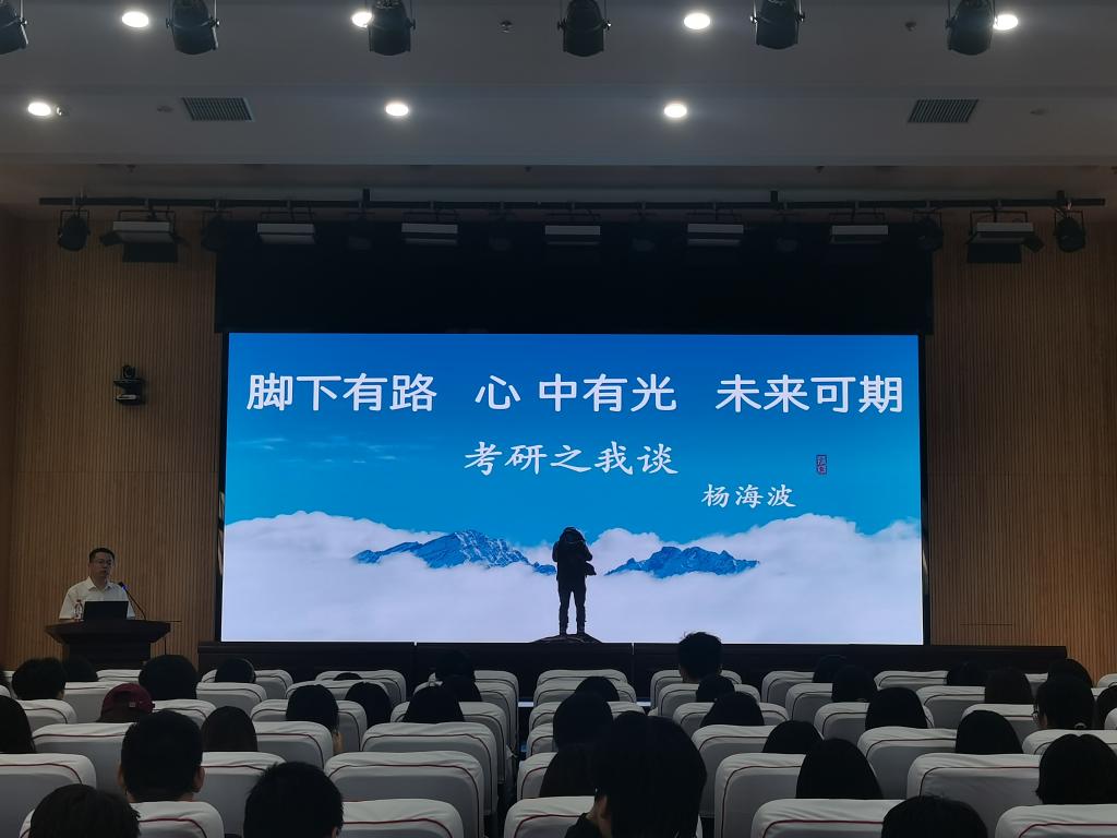 楊海波結(jié)合自身求學(xué)歷程,從“認識考研”“目標確立”“科學(xué)備考”“關(guān)鍵要素”四個方面展開講解,鼓勵學(xué)生結(jié)合自身特點制定個性化備考方案并提出了院校選擇策略、高效復(fù)習(xí)方法,幫助學(xué)生厘清備考思路、做好備考準備。他最后強調(diào),穩(wěn)定的心態(tài)、鍥而不舍的精神和學(xué)習(xí)他人經(jīng)驗是考研成功的關(guān)鍵因素。