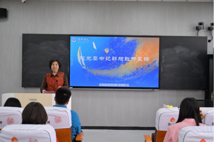 本站訊(通訊員 白帆)為了激發(fā)學(xué)生專業(yè)學(xué)習(xí)熱情,鼓勵同學(xué)們關(guān)注社會經(jīng)濟(jì)現(xiàn)象,探究經(jīng)濟(jì)學(xué)科前沿?zé)狳c(diǎn)問題,營造學(xué)思踐悟、知行合一的學(xué)習(xí)氛圍,激發(fā)經(jīng)世濟(jì)民的時代責(zé)任感與歷史使命感,經(jīng)濟(jì)學(xué)院立足學(xué)科專業(yè)特點(diǎn),于5月8日舉辦“勇闖經(jīng)濟(jì)新賽道,智啟青春新征程”第二屆經(jīng)濟(jì)文化節(jié)開幕式,著力鍛造五育融合新范式,聚力培育新時代經(jīng)濟(jì)人才。學(xué)院黨委書記郭旭,黨委副書記、紀(jì)委書記王麗娟出席活動,專業(yè)課教師代表、全體輔導(dǎo)員及學(xué)生代表等百余人參加活動。